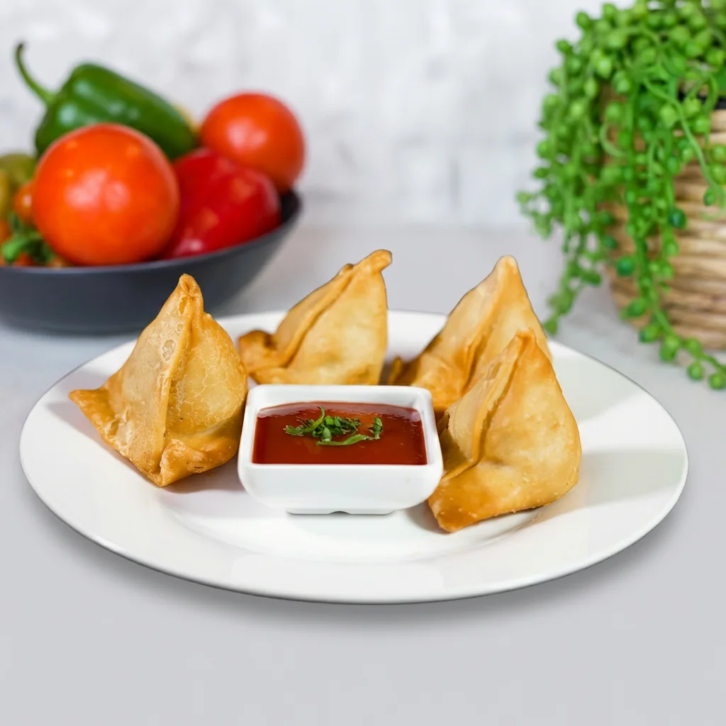 Samosa fried in wok and serve with homemade tomato sauce